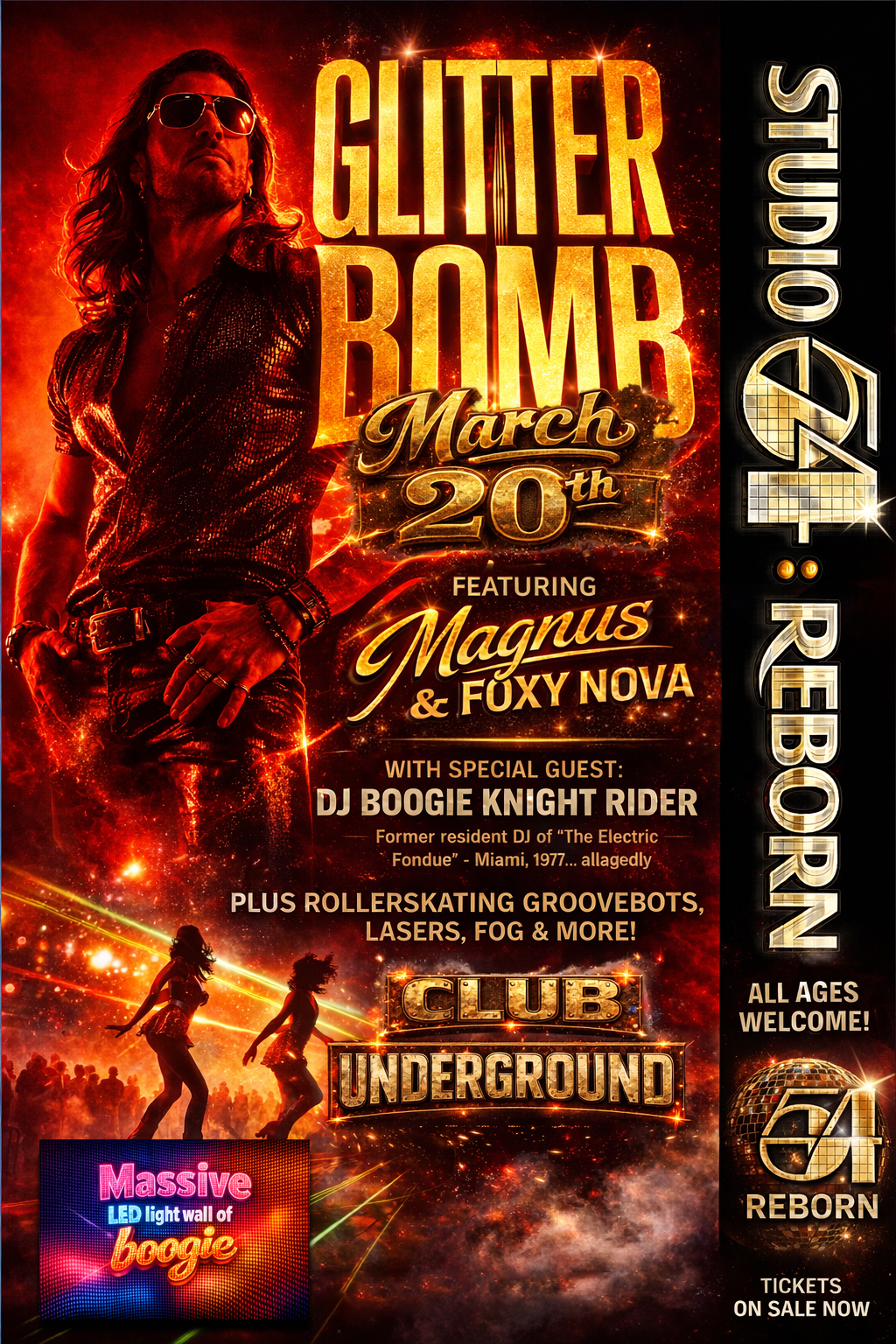 Glitter Bomb brings a full 70s disco experience to Club Underground for one night only.